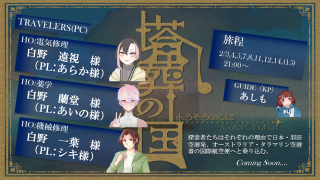 クトゥルフ神話TRPG「塔葬の国」作:宴規さんKP:あしも様白野 一葉(しらの かずは)/シキ白野 蘭堂(しらの らんどう)/あいのさん白野 遠視(しらの とうみ)/あらかさん END-A 2025/2/15
