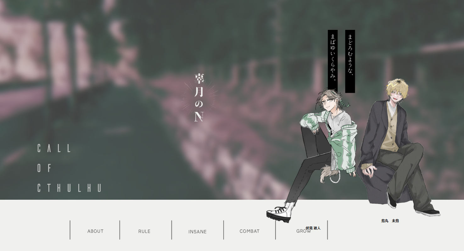 「辜月のN」2陣目 クトゥルフ神話TRPG 2024.11.282024.12.01 クトゥルフ神話TRPG「辜月のN」作:大点様KP:シキPC1:伏見 遊人(ふしみ ゆうり)/増田さんPC2:烏丸 未鳥(からすま みどり)/SASAKIさん 両生還 24/11/28