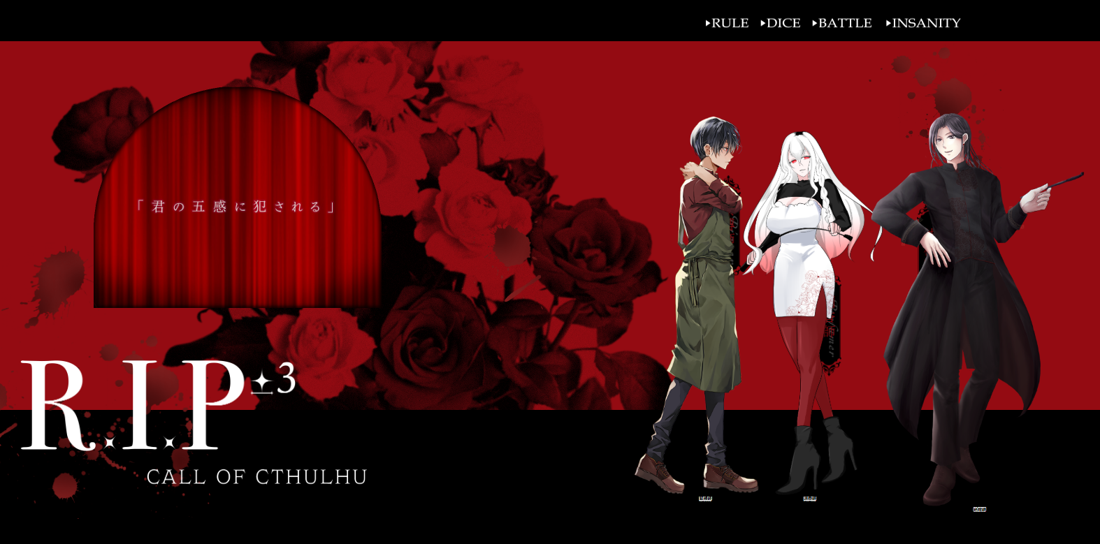 「 ʀ.ɪ.ᴘ±³」 クトゥルフ神話TRPG 2024.12.28 クトゥルフ神話TRPG「 ʀ.ɪ.ᴘ±³」作:キスと酒場様KP:シキHO緊縛師:とくさんHO調香師:侘茶さんHO納棺師:シキ END1 2024/12/27