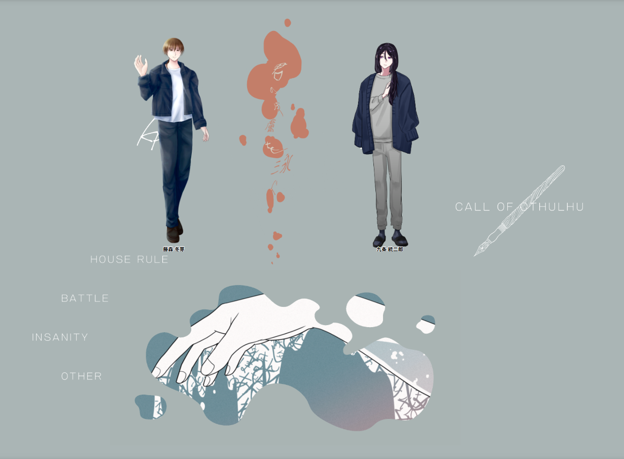 「君の皮膚を泳ぐ」 クトゥルフ神話TRPG 2025.04.28 クトゥルフ神話TRPG「君の皮膚を泳ぐ」作:茶鰯様KPC/KP:藤森冬芽/シキPC/PL:九条 統二郎/侘茶さん END1 2025/4/27