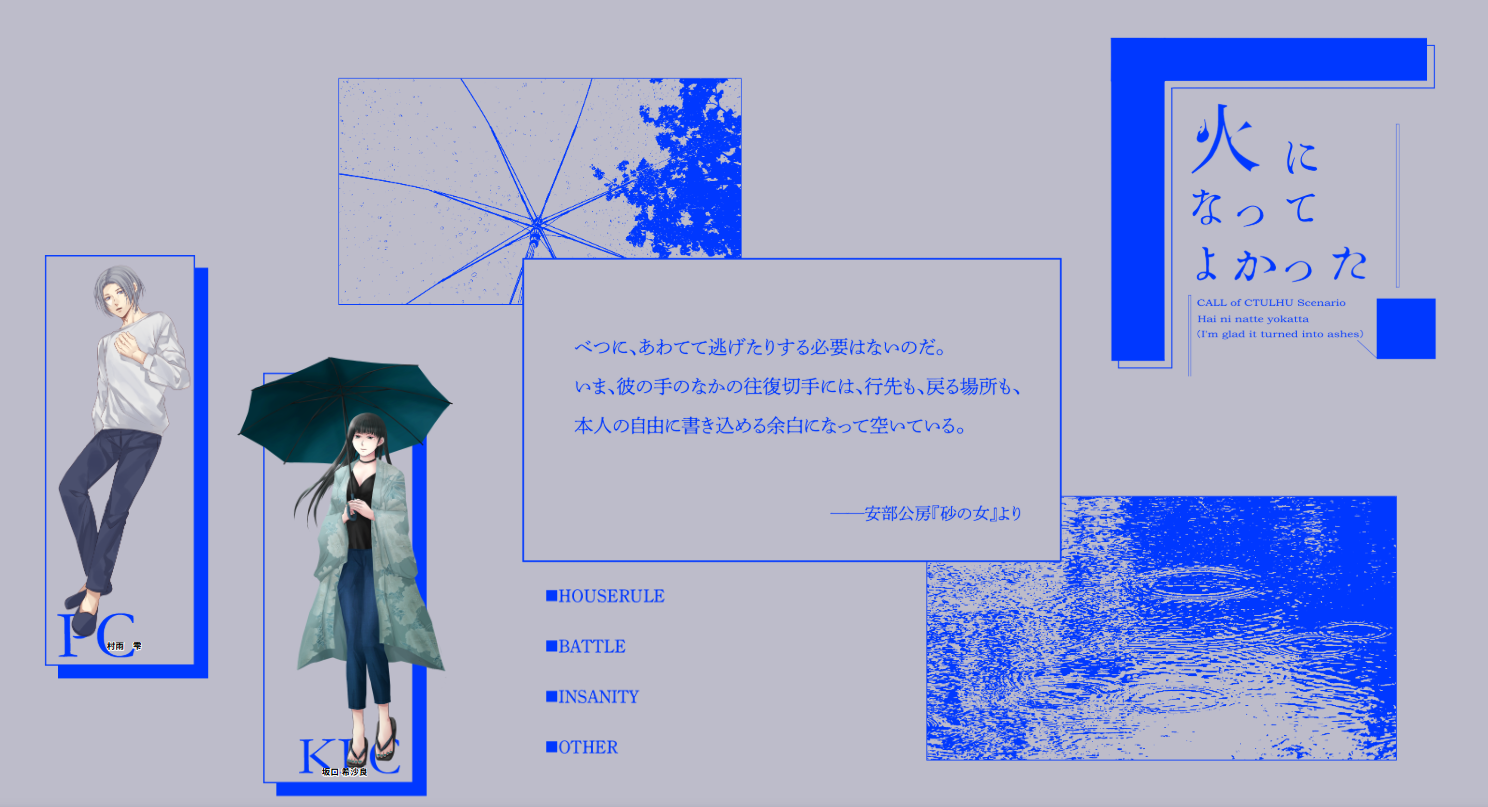 「灰になってよかった」8陣目 クトゥルフ神話TRPG 2025.05.31 クトゥルフ神話TRPG「灰になってよかった」作:遮光様KPC/KP:坂口 希沙良(さかぐち きさら)/シキPC/PL:村雨 雫(むらさめ しずく)/るかさん END52025/5/31
