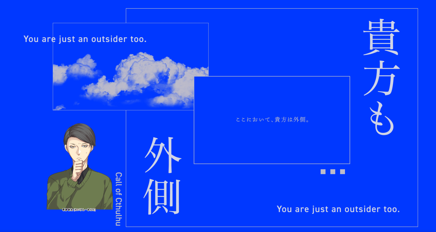 「貴方も外側」8陣目 クトゥルフ神話TRPG 2025.07.06 クトゥルフ神話TRPG「貴方も外側」作:遮光様KP:/シキPC/PL:零源 新太(れいげん・あらた)/るかさん END1 2025/7/6